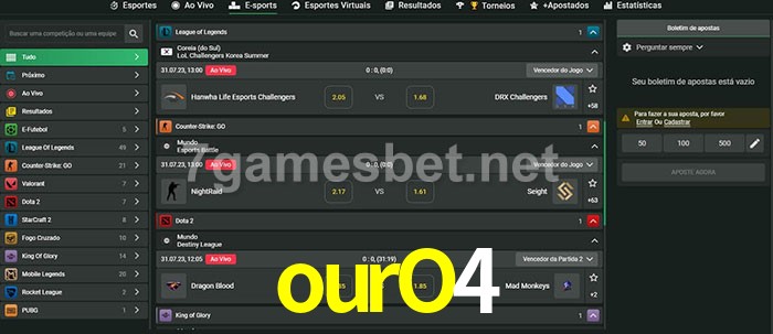 O ourO4 oferece uma grande seleção de opções de apostas em e-sports com probabilidades competitivas